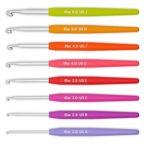 Soft Grip Crochet Hooks feature a soft, contoured handle that provides comfortable working for a longer time!