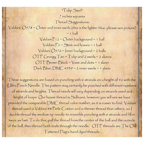 An original pattern from Julie Thomas at The Old Tattered Flag. An antique adaptation, this Tulip is inspired from an 1800’s folkart painted chest front. The finished size of this pattern is 7.5″ x 7.5″.