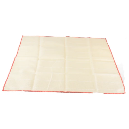 Bleached linen rug hooking blank that measures 18″ x 18″ with a serged edge.